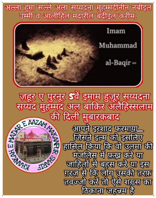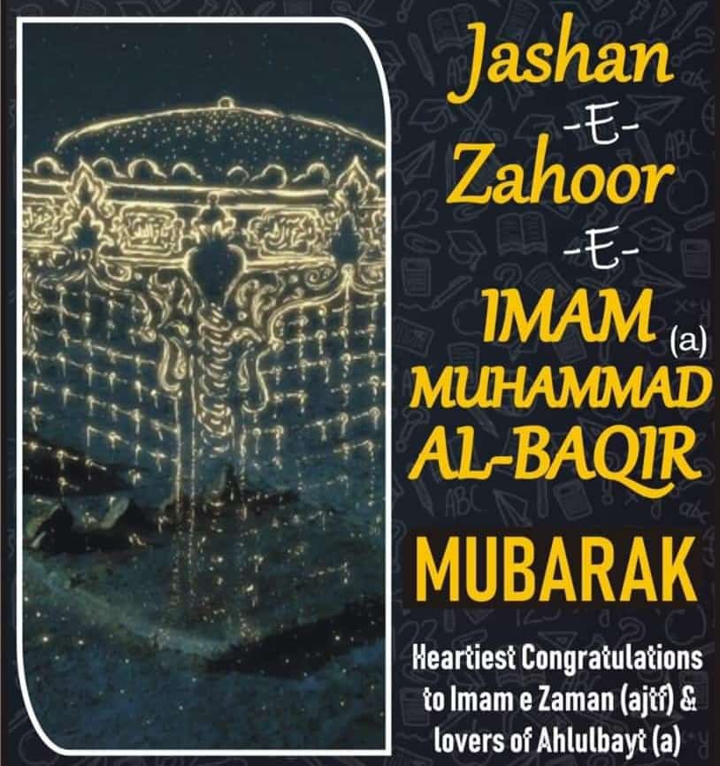 IMAM MUHAMMAD AL BAQIR AL HUSSAINI AL HASANI AHLE BAIT E RASOOL (SALLALLAHU ALAIHI WA ALAEHI WA SALLAM) KI YAUM E WILADAT AAP SABHI KO MUBARAK HO