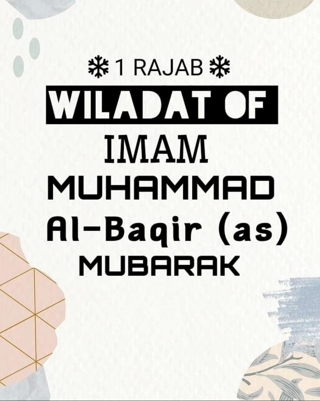 Aj 1th Rajab ul Murajjab Us Zaat e Paak ki Wiladat ka Din hai Jisey Qainat Imam MUHAMMAD BAQIR (عليه السلام) ke Naam se Jaanti hai.