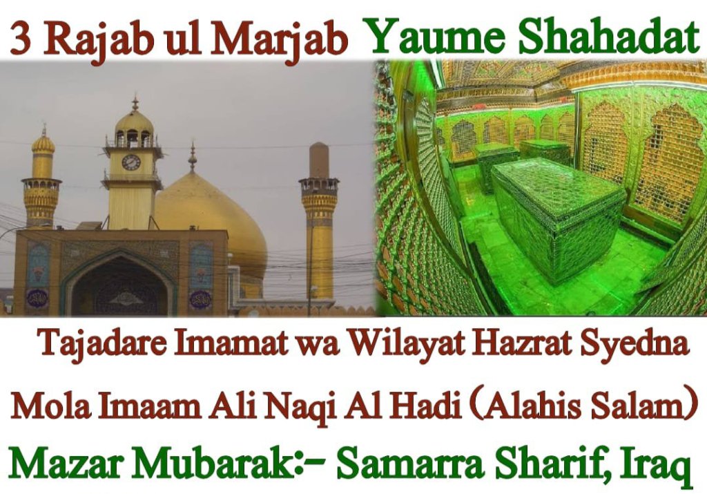 ๐ญ๐ญ 3 Rajab ul Murajjab Yaum e Shahadat 10we Tajdar e Imamat o Wilayat Hazrat Sayyiduna Imam Ali Naqi Al Hadi ibn Hazrat Sayyiduna Imam Muhammad Taqi Al–Jawwad (Alaihumus Salaam)