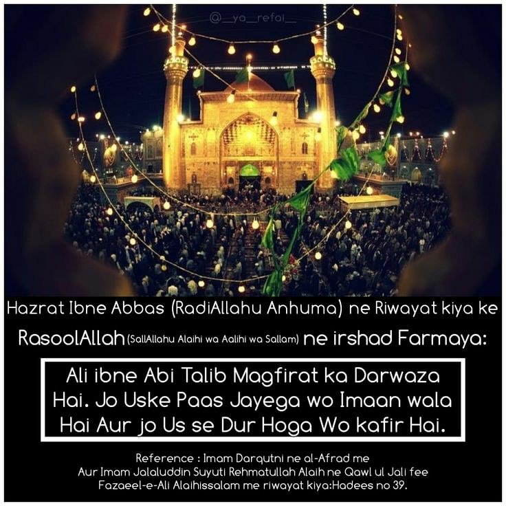 Hazrat Ammar Bin Yaasir RadiyAllahu Ta’ala Anhuma Bayan Karte Hain Ki Mein Ne Huzoor Nabi-E-Akram (صلی الله عليه وآله وسلم) Ko Hazrat Ali (کرم اللہ تعالیٰ وجہہ الکریم) Ke Liye Farmate Huwe Suna (Aye Ali) Mubarakbad Ho Use Jo Tujh Se Muhabbat Karta Hai Aur Teri Tasdiq Karta Hai Aur Halaakat Ho Us Ke Liye Jo Tujh Se Bughz Rakhata Hai Aur Tujhe Jhutlaata Hai.” .