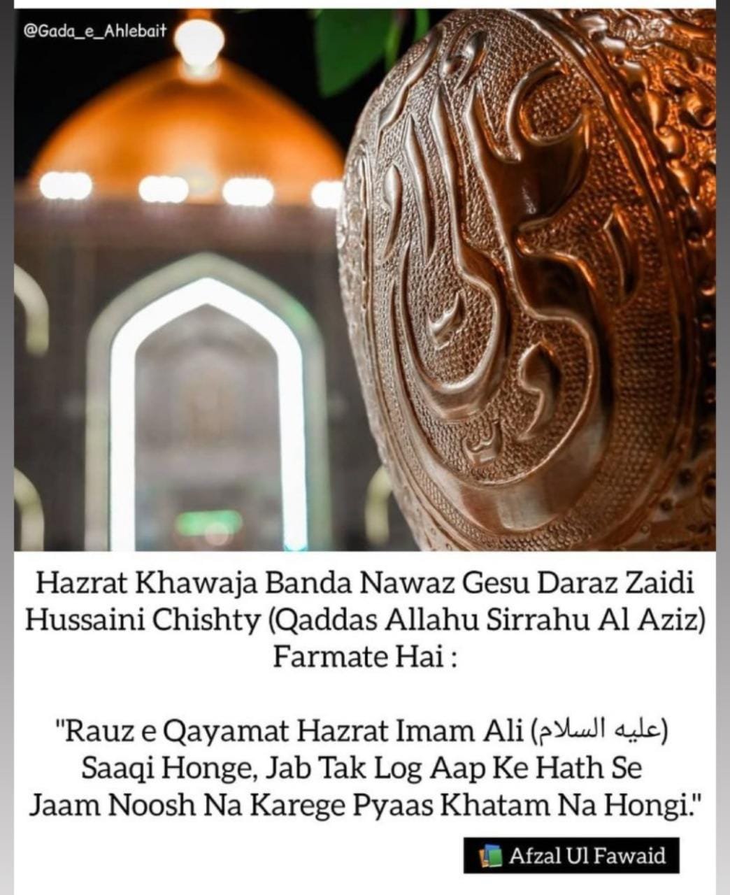 Hazrat Syed Khwajah Banda Nawaz Gaisu Daraaz Rehmatullah alaih aur Ishq e Panjatan Posted byaal-e-qutubJune 30, 2021Posted inUncategorized “Laa Ilaah illallah, Mohammad Ur Rasulallah, Aliun Waliullah” Written on main gate of Mazar Sharif of Saiyedna Khwaja Banda Nawaz Gesu Daraz, Gulbarga Sharif Share this: Click to share on X (Opens in new window) X Click to share on Facebook (Opens in new window) Facebook Like Loading... Related