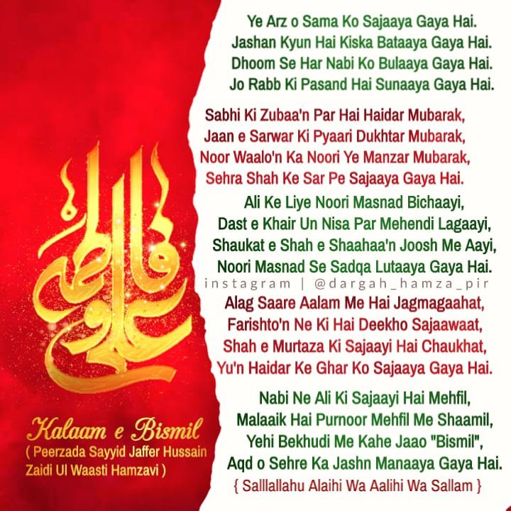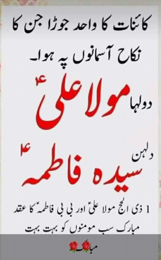 Aqd-e-Sayyeda Fatimah tuz Zahra wa Sayyeduna Maula Ali al Murtaza KarramAllahu Wajhahuma.