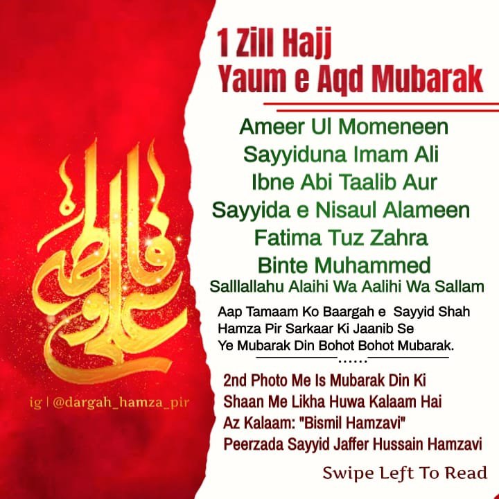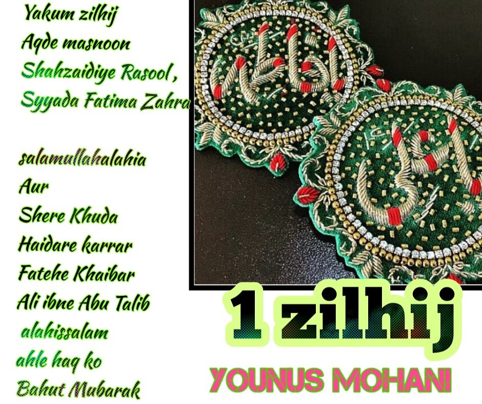 Ek Zilhajj ko Wo Mubarak Nikah hua jo pehle Allah Ta’ala ne Arsh pe karwaya aur fir Farsh pe Allah ke Rasool (SallAllahu Alaihi wa Aalihi wa Aalihi wa Sallam) ne karwaya!