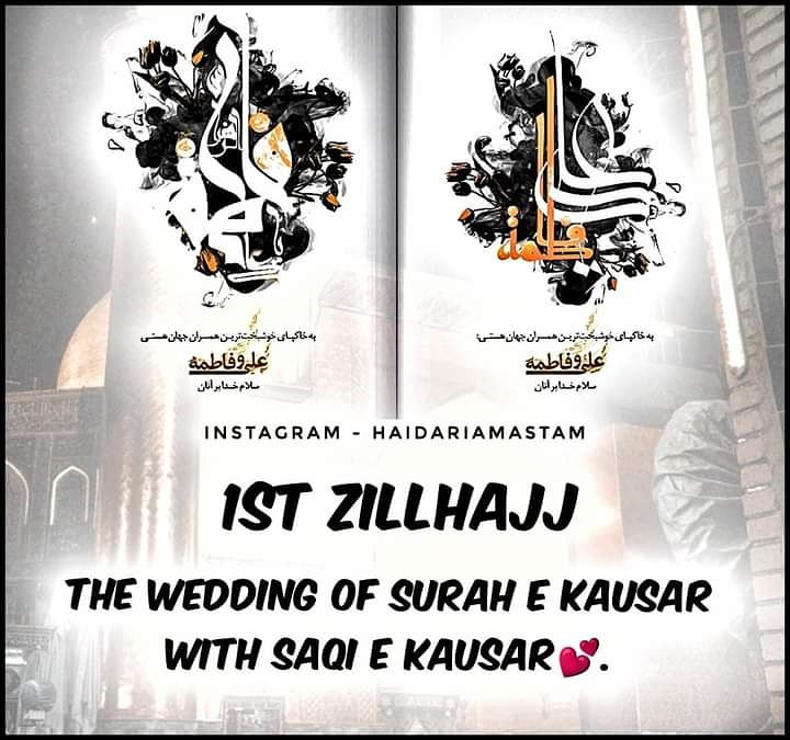 1 जिल्हिज्जा अक़्द ए सय्यदा ए क़ायनात फ़ातिमा बिन्ते रसूलल्लाह व मौला अली इब्ने अबु तालिब अलैहिस्लाम