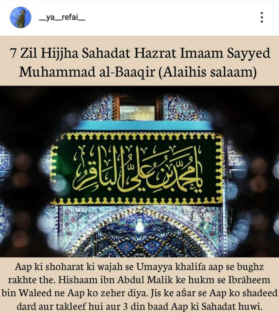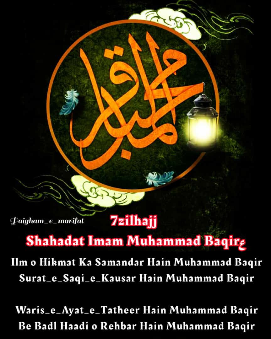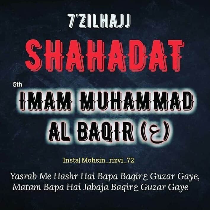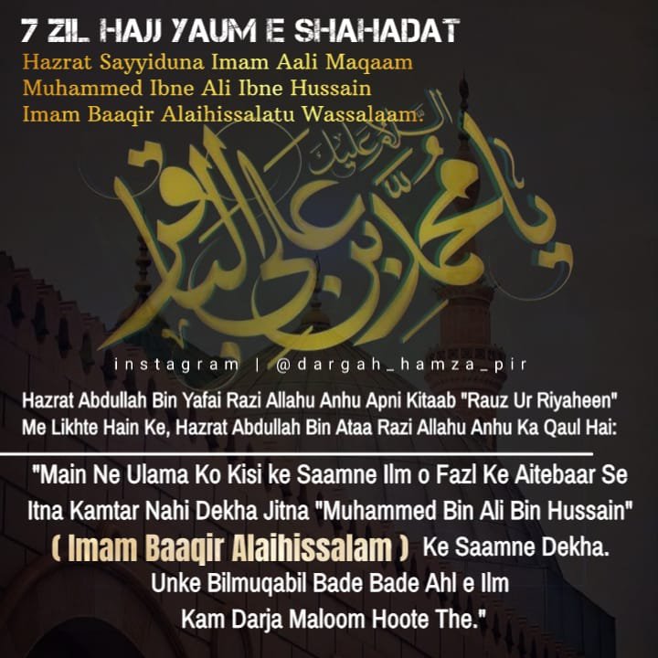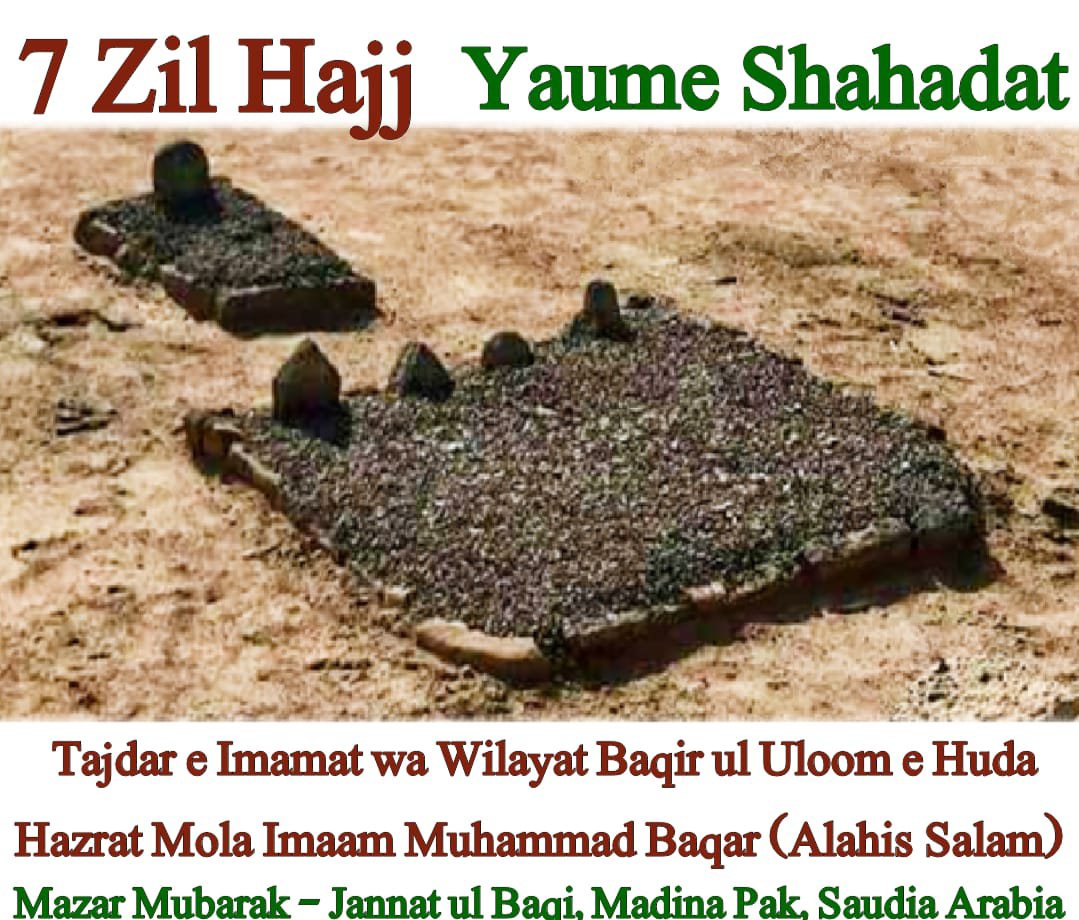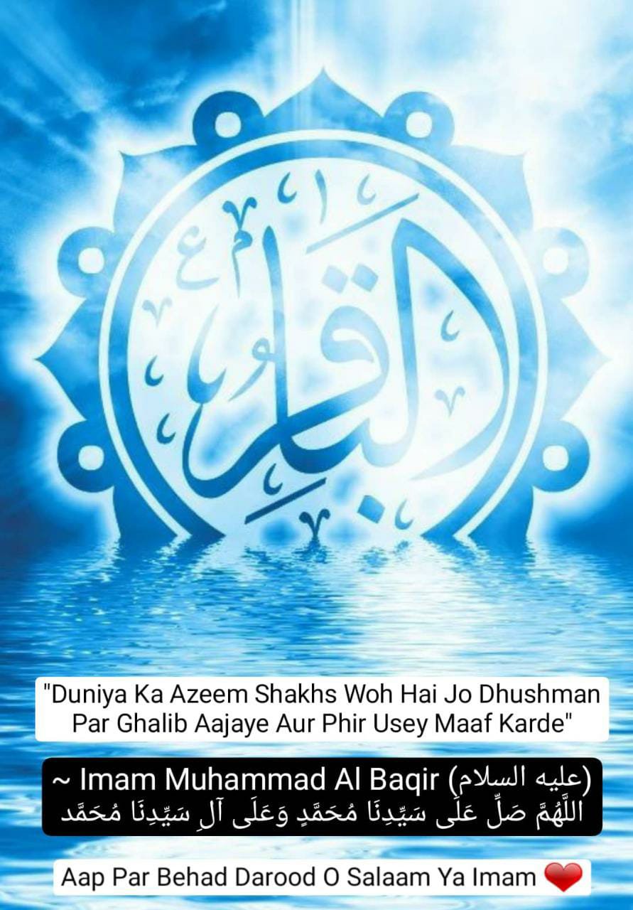Aaimma e Ahle Baith Ke 5we Imaam Tajdar e Imamat wa Wilayat Aale Rasool Aulad e Mola Ali o Syyeda Batool Dilbar e Imaam Hussain Jigar Gosha e Imaam Zainul Aabedin Baaqir ul Uloom e Huda Hazrat Syedna Mola Imaam Muhammad Baqar (Alahis Salam)