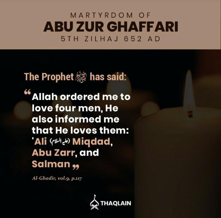 During those few years in Madina, Abu Zar became very friendly with Imam Ali bin Abi Talib. The four people named Salman al-Farsi, Abu Zar Ghaffari, Miqdad bin Aswad and Ammar Yasir were always seen in the company of Imam Ali bin Abi Talib. They came to be known as the Shia.