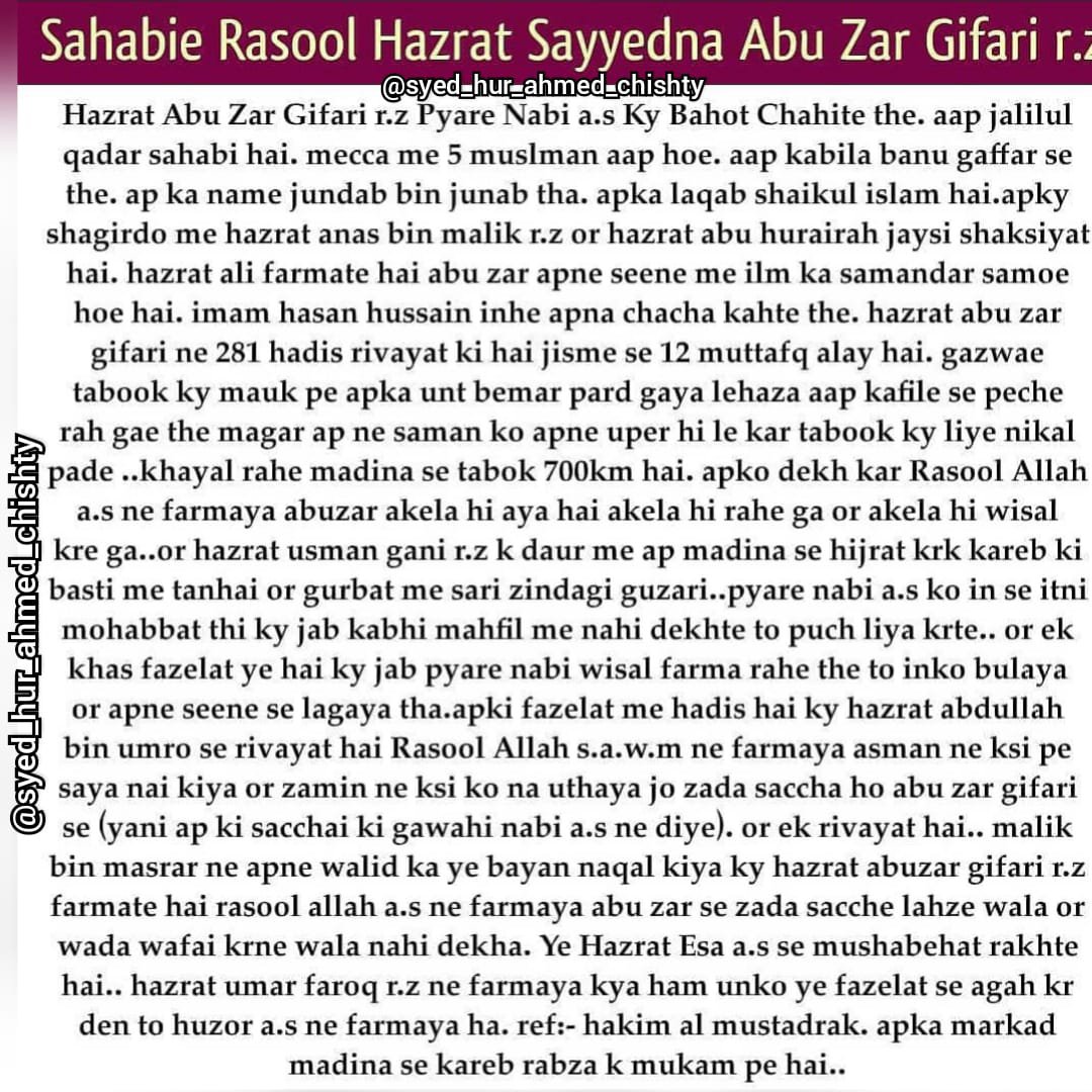 Aap Par Behad Darood O Salaam Ya Abu Zar Gaffari (رضئ اللہ تعالی عنہ).