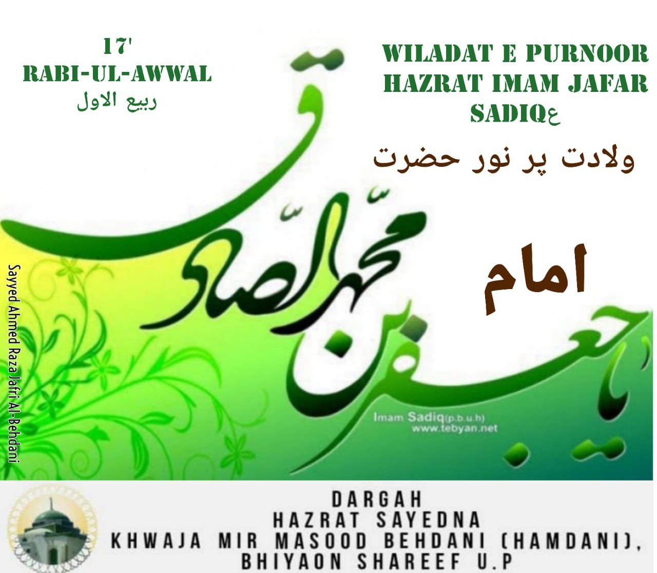 Yaum e Wilaadat Imam Jafar Saadiq 17 RabiulAwwall. Posted byaal-e-qutubOctober 24, 2021Posted inUncategorized Share this: Click to share on X (Opens in new window) X Click to share on Facebook (Opens in new window) Facebook Like Loading... Related